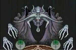 The screen faded to black, and I heard her demonic laugh. The Queen then entered her second form. She grabbed Sabata with one of her skeletal hands, raised him up to her mouth, then bit him in half. Sabata screamed the way he did when he dies in Boktai 2 if you’re playing as him, but it was more drawn out, and much louder. The music that was playing was from Boktai 2 when you get the bad ending, by either being eaten by Jormungandr or if you choose to join Black Dainn. The screen faded to black and some text appeared :