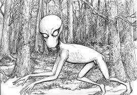 She came back out with a white piece of paper and put it on the table. The drawing looked as if it was from a horror movie, or what most people describe as "Aliens."