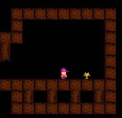 The character moved pretty slowly and only jumped atleast 1 and a half bricks high, so he wasn't the strongest of video game protagonists. After leaving the room the character starts in, you walk into a large tall room with a pit in the ground. With no other paths to take, the character has to jump down the hole, leading to another room.