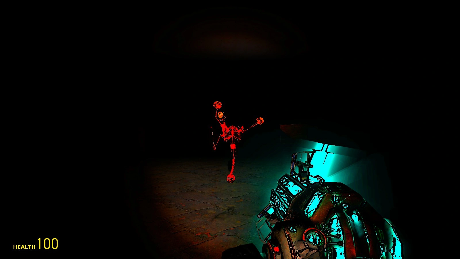 A sudden loud beep made me jump up from my chair. I looked at the screen. Nothing had changed. At least I thought so. When I touched the mouse to look to my right, the whole screen spazzed out. Same was for pressing the W key, or the S key. That's when I heard something coming up in my left earpiece again. It was the heavy breathing from before. I let go of the mouse and the keyboard because I knew it spazzed the whole time. The breathing in my ear got louder and louder. It made me feel extremely uncomfortable because it sounded so real, like someone was actually breathing in my ear. I touched the mouse again, and saw I could move normally. However, the A D and S keys still gave me the screen spazzes. I pressed W. And I slowly moved forward into the room. I aimed ahead again and pressed the primary trigger. Yup, the physgun was still glitched. As I walked, I saw something emerge from the darkness, into the light of my flashlight.