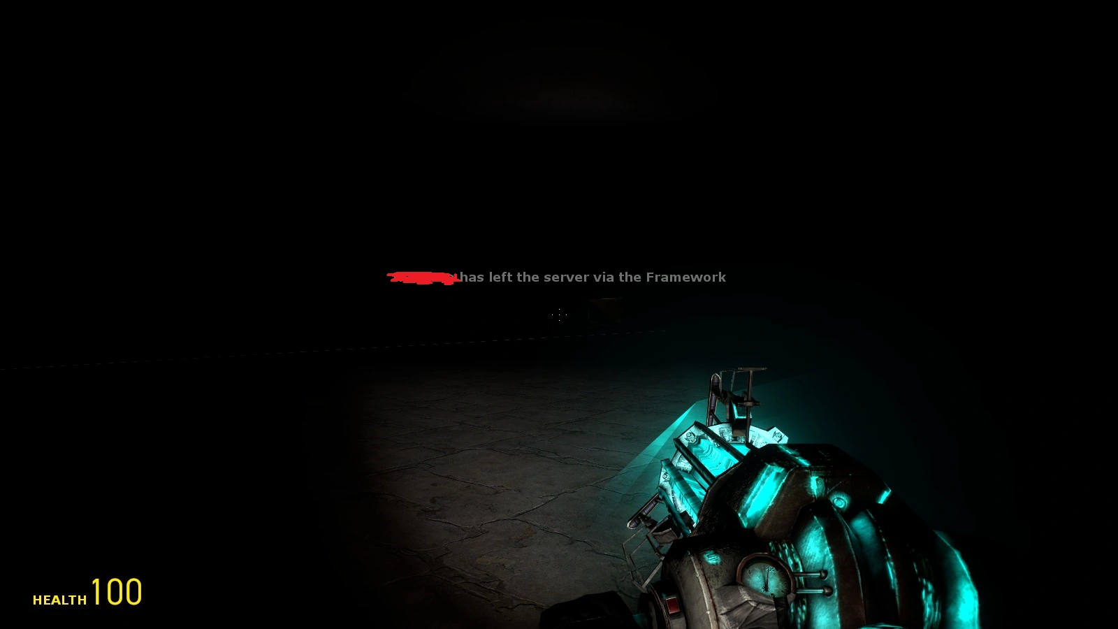 And thus, I was the only person left on the server. Perhaps this Framework thing was just the admin, who just coded the kick message to display like that. Either way, I was a bit weirded out by the physgun glitch. I've never experienced it before in any of those 2200 hours I've played. I felt a wee bit uneasy. There was no zombie in the room. Then what made the growl? And why was my physgun glitching? I walked further into the room, still aiming my physgun at whatever made it glitch.