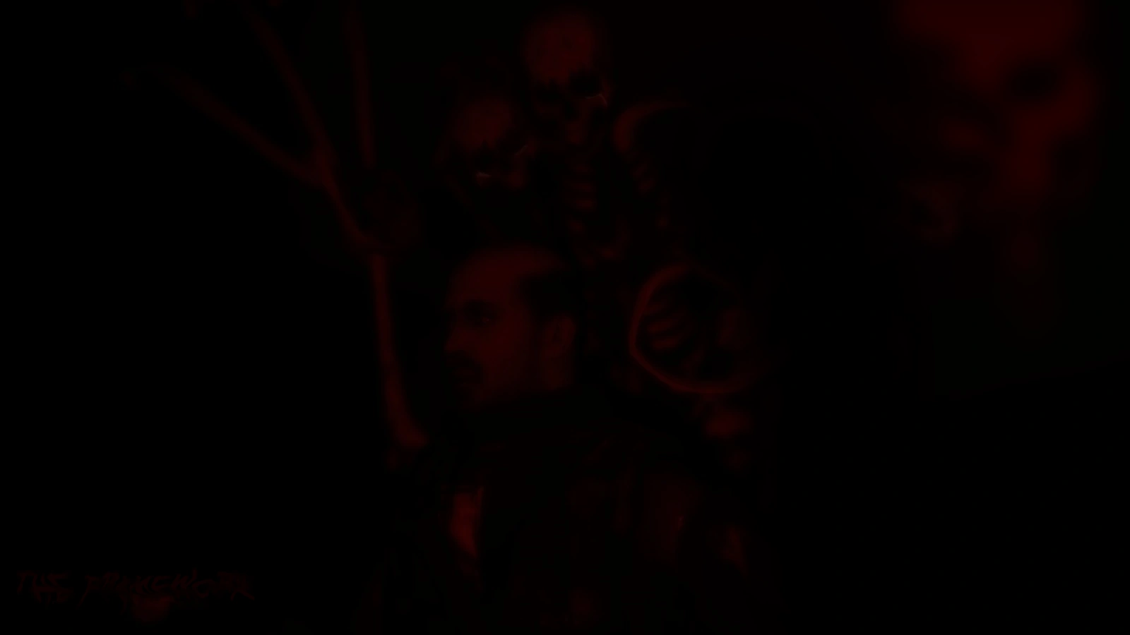 It was the picture of a semi-bald man, standing in total darkness with a frightened expression on his face, looking at the left side of the screen. Behind him towered a skeletal figure reminiscent of the thing I saw in-game. However, this thing looked much more menacing and taller, apparently had blood dripping from the skull's eye sockets, and it loomed over the man as if it were about to devour him. The image was vague, but...It looked so real to me...On the bottom left of the image, I could barely make out two words: