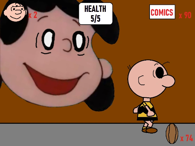 At this point, I was starting to lose interest in developing the game because I was having to go through development hell and things getting haywire. One day, I was play-testing the game and a strange full motion video played when I got a game over. For some reason, we decided that you get an instant game over when Lucy kills you. This unnerving scene plays where Charlie Brown is dead on the ground and they just scold him for not saving the world. Everyone else leaves and Lucy pulls off the Micheal Jackson thriller ending scene with a red sky, flashing lights appearing before she laughs maniacally. A threatening game over screen appears right after the full motion video ends. I started to ask myself where I went wrong with this. I played the game again the same night, then I got to a certain of the bad ending and took a picture of it.