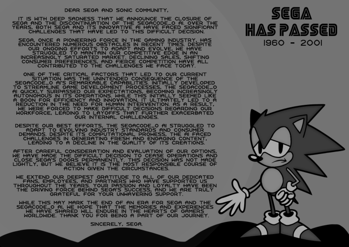 Hi, I'm Amanda, and I worked for SEGA 10 years ago before the company went bankrupt because of that soulless AI. I was one of the employees who weren't fired, but anyway, I am gonna tell the tale of how NOT to be SEGA: