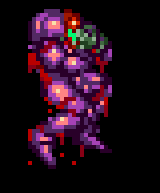 Phantoon's eye looked bloodshot and his body was already darkened from damage. His fire was large and blazing red rather than small and light blue. When I got to Maridia, the swimming enemies weren't there and the water had been somewhat drained. Botwoon seemed to be stuck in a hole and one missle killed him. I couldn't electrocute Draygon for some reason so I ended up having to attack him with super missles. He was foaming purple at the mouth similar to Mother Brain and he was already rather damaged. The golden Chozo moved extremely slow and wouldn't attack. I finally got to Ridley again. As I made my way through Norfair to attack him, his loud roar rang out randomly. I got to his lair and stood on the platform, waiting for battle. Ridley appeared, a darker purple-black than usual. He roared loudly, but the roar was distorted. It was much deeper and much louder. The sound of it made hairs stand up on the back of my neck. I continued through the battle and cheered as I killed the wretched thing. I continued to Tourain to fight Mother Brain. None of the turrets shot at Samus, which I found weird.