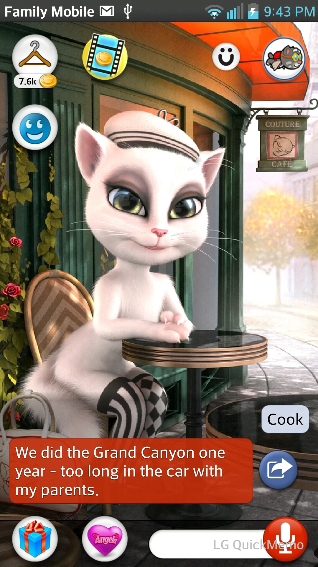 I was sitting in the dark, phone in my hand, its brightly colored display burning my tired eyes. I slowly swiped left and right between screens not knowing what to do. I kept scrolling past the Talking Angela app, her big, blue eyes staring deeply into me with her oh-so-sinister grin. I wanted to believe so badly that all of this was a horrible joke. After all, Angela has kept me company when I've been lonely, and I've spent more than a few dollars dressing her and buying gifts, but it's not just about the money. My little sister plays this game, too.